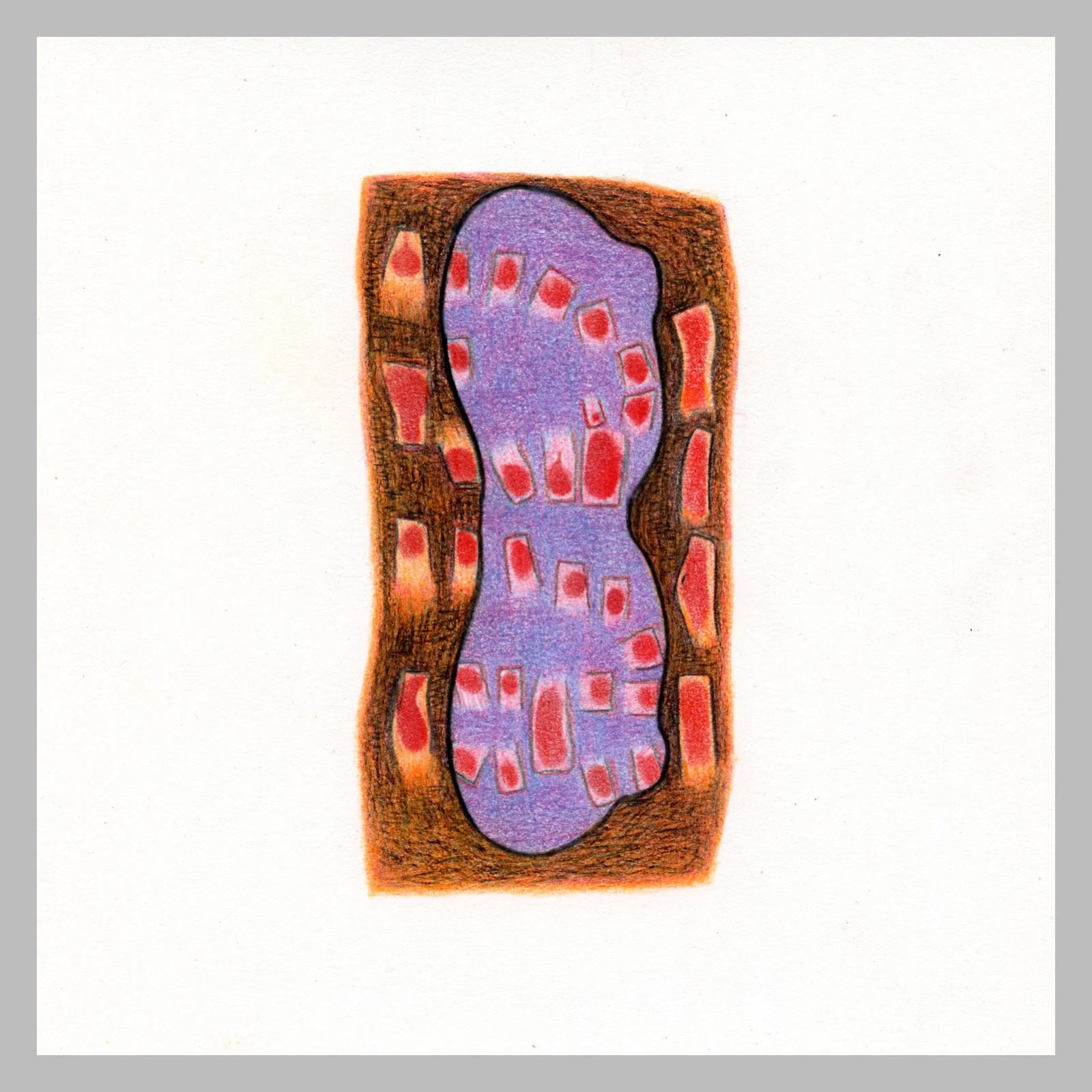 A series of 100 drawings - colored pencil, pastel and occasional oil stick on paper, 8.5” square, 2023